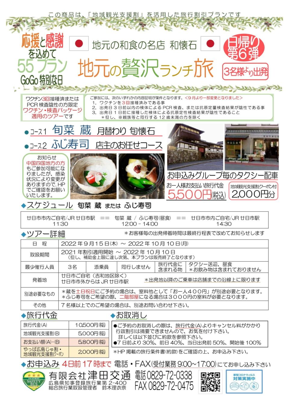お申込みには同行者全員のワクチン3回接種済証明