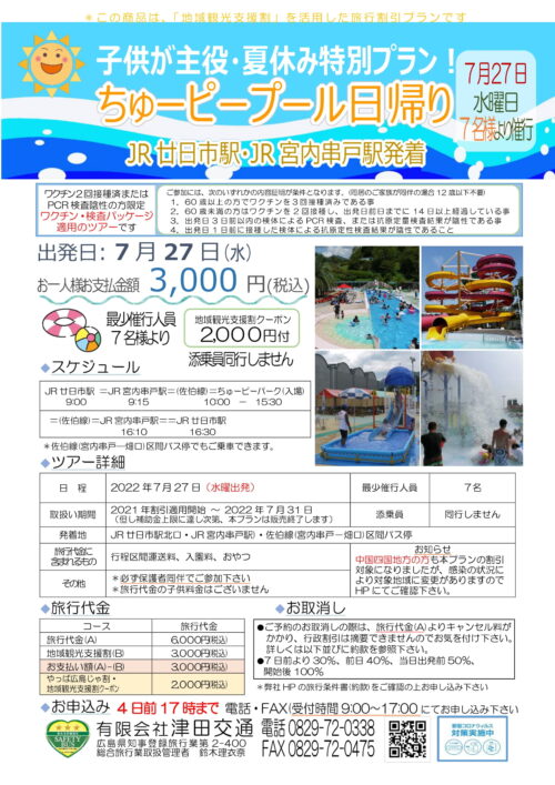 4日前(17時)までに津田交通へ電話にてお申込み下さい。